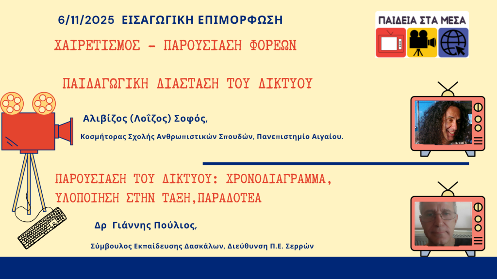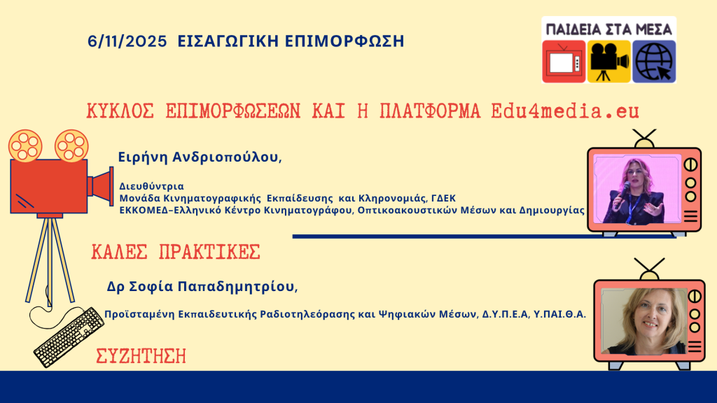 Εισαγωγική διαδικτυακή επιμόρφωση 11 Νοεμβρίου 2025 Ανακοινώσεις by edu4media Πραγματοποιήθηκε στις 6 Νοεμβρίου 2025, διαδικτυακά, με τη συμμετοχή 170 περίπου εκπαιδευτικών του δικτύου.